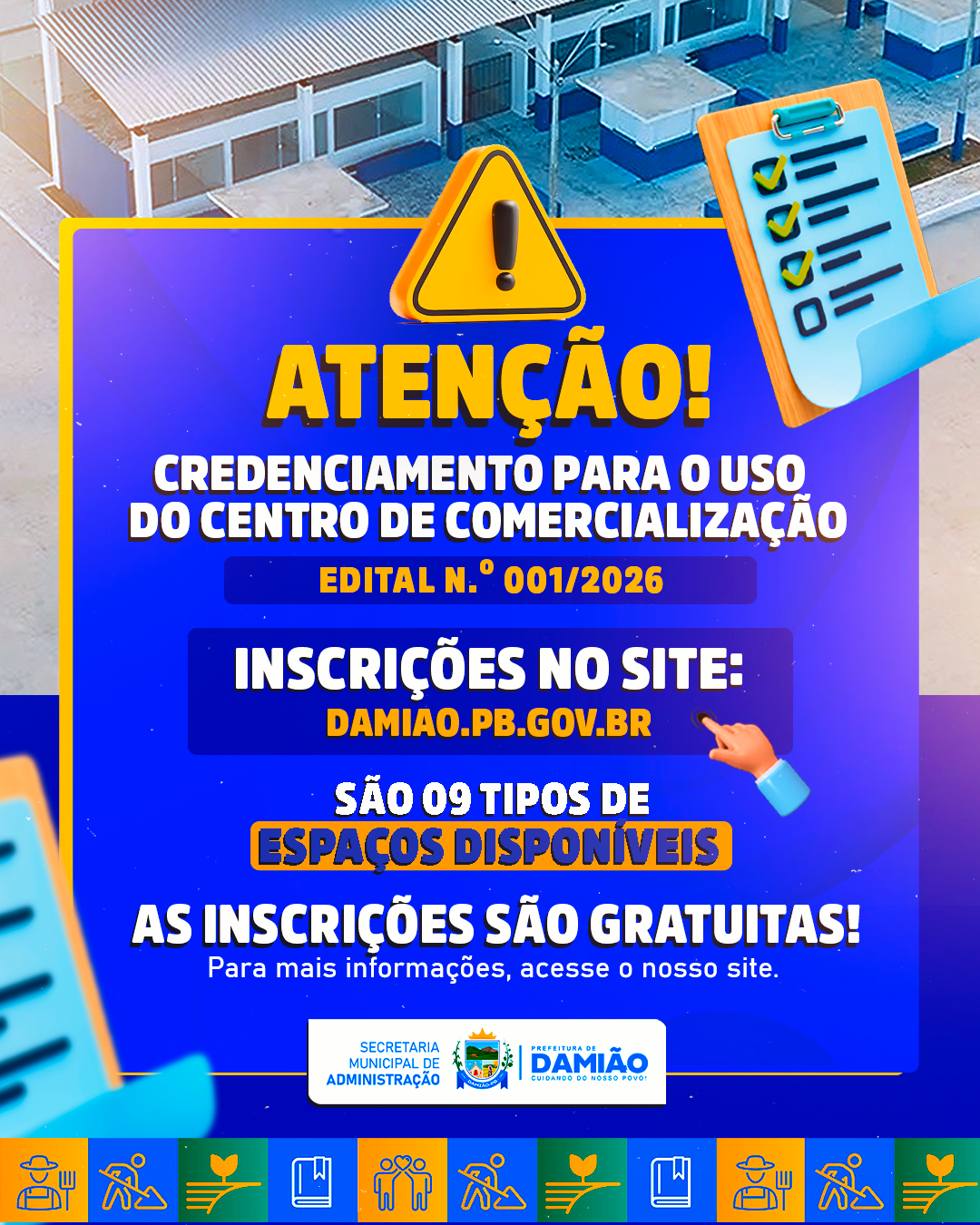 #PrefeituraDeDamião #CentroDeComercialização #Credenciamento #Oportunidade #ComércioLocal