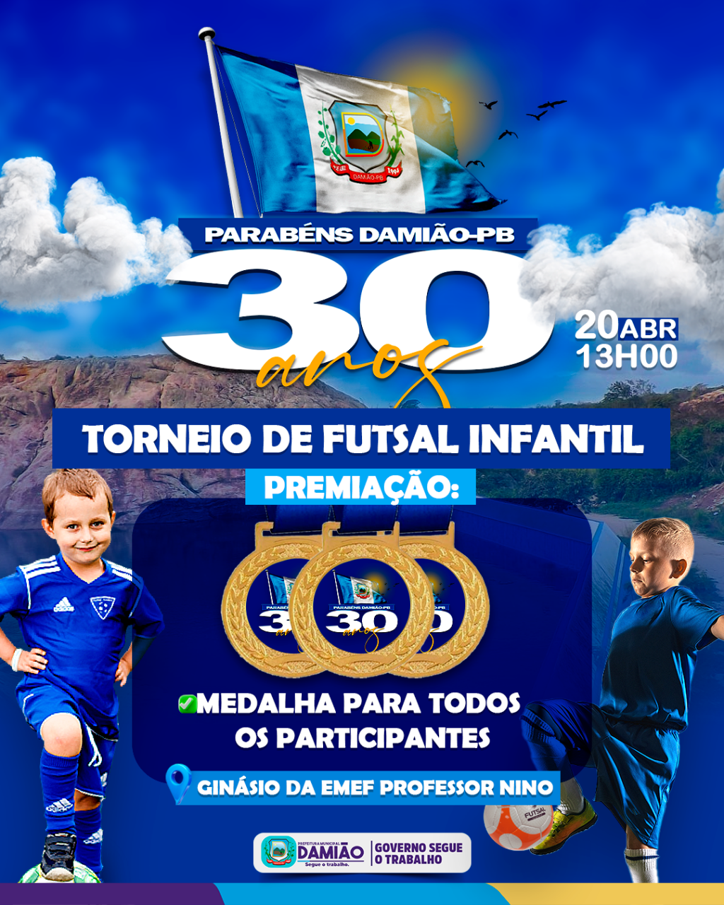 Torneio de Futsal Infantil ⚽ em comemoração aos 30 anos de Emancipação Política do nosso município. 🎉