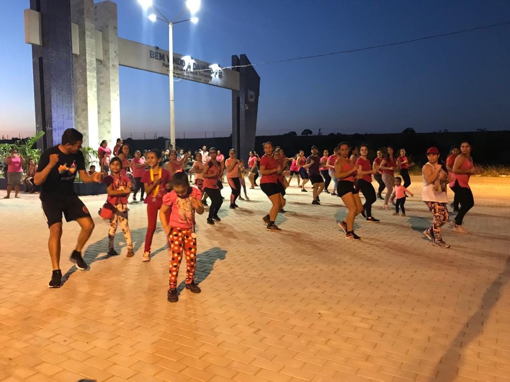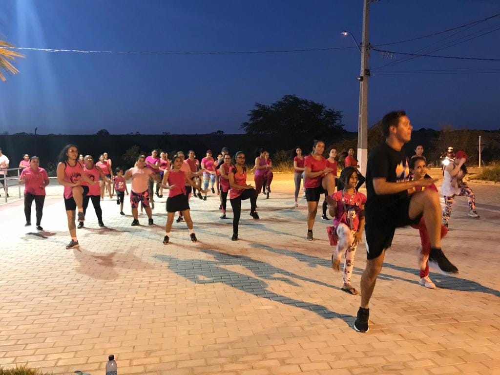 Registros da Zumba especial OUTUBRO ROSA Mês de prevenção ao câncer de mama com o Grupo de mulheres acompanhado pelo CRAS e demais mulheres do município. No dia 28/10.