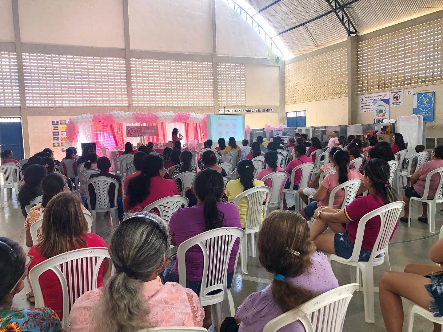 No dia 21/10/22, a secretaria municipal de saúde em parceria com as secretarias de educação, assistência social, infraestrutura e meio ambiente, realizaram o evento alusivo ao Outubro Rosa. Na ocasião, a prefeita Simone Azevedo, vereadores, secretários municipais, e coordenadores estiveram presentes na quadra da Escola Professor Nino para prestigiar o evento. Foram ofertados testes rápidos, café da manhã, sorteio de brindes e entrega oficial de equipamentos adquiridos para a saúde por meio de uma emenda parlamentar.