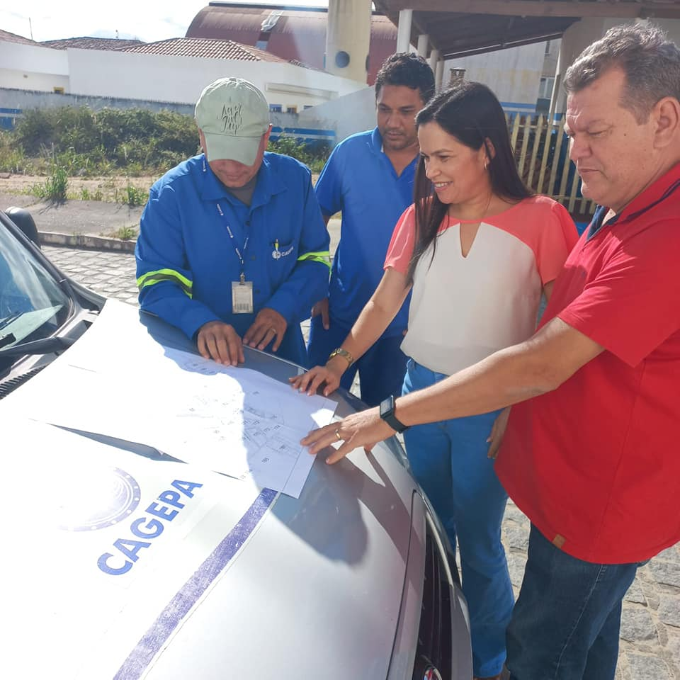 Nesta sexta feira, 02 de setembro de 2022, funcionários da CAGEPA juntamente com a prefeita Simone Azevedo e engenheiro do município de Damião-PB, traçaram metas para extensão da rede de abastecimento de água na cidade. A construção da rede de abastecimento de água no município do Damião foi feita nos anos 90 e, para tanto, ainda não havia nenhuma extensão. Essa é mais uma ação da gestão que vem beneficiar a população damiaoense. Pode ser uma imagem de 2 pessoas, pessoas em pé, carro, ao ar livre e texto que diz "CAGEPA"