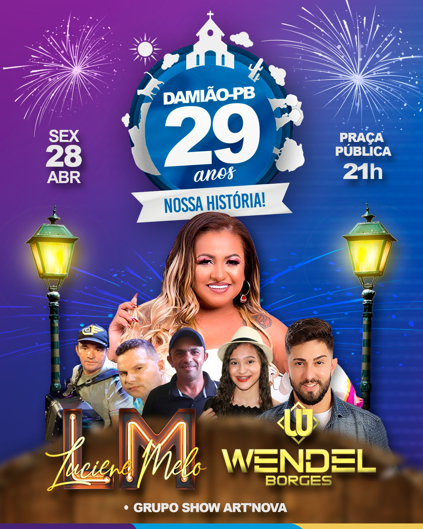 Preparados para a festa da "nossa história" para curtir com muito forró das antigas? Comemoraremos os 29 anos de Emancipação Política de Damião-PB em grande estilo, com Luciene Melo (ex-Magníficos), Wendel Borges e artistas da terra. O Governo Municipal prepara uma programação com atividades cívicas, culturais, religiosas e esportivas para seus munícipes!